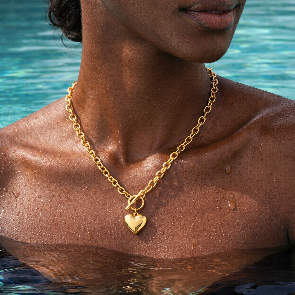 Puffy Heart Necklace - Waterproof Gold Jewelry